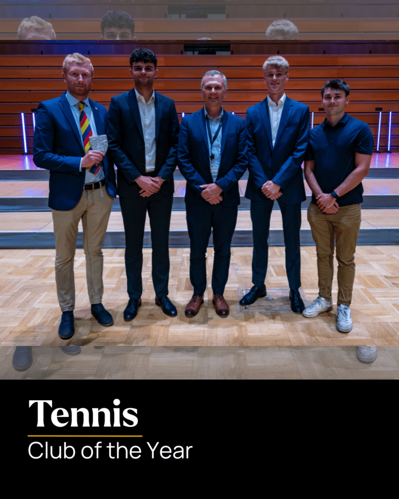 The Tennis Club has seen a standout year of growth, success, and innovation. Membership surged by 69% to a record-breaking 644 members, thanks to inclusive weekly coaching, matchplay opportunities, and the introduction of a new social membership. This season marked the highest BUCS win rate in club history, with a 74% overall success rate, a 91.5% increase in BUCS points, and a nine-place climb in national rankings. Four out of nine teams were promoted, and seven finished in the top two of their leagues, with a fifth men’s team launched to support the club’s expansion. Partnerships with Edgbaston Priory and Billesley Tennis Centres improved indoor training access, while performance analysis using GoPro footage raised playing standards across all levels. Off the court, the club made a real impact: monthly competitions welcomed over 60 players, and a 24-hour charity tennis event, livestreamed on YouTube, reached over 1,000 viewers per stream. The DYUCE ball recycling scheme set a strong precedent for sustainability, while the Tennis 2000 Project, backed by alumni funding, began work to bring tennis into underrepresented communities. With its thriving WhatsApp community and strong social spirit, the club has built something truly special both on and off the court.